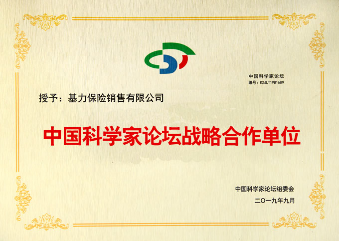 中国科学家论坛战略合作单位-证书
